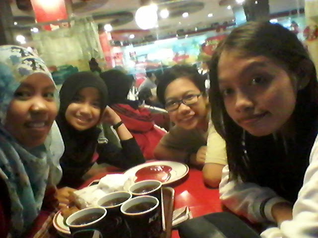 Kita janjian buat ketemuan di KFC cinere. Hari itu gua masuk pagi, tapi datengnya telat, jadi di hukum buat loyalitas selama sejam. Udah gitu ayah gua datengnya lama. Pas udah di jemput langsung caw ke cinere, jam setengah 6 gua akhirnya nyampe sana. Heran gua kalau di cinere pasti hp gua ngga ada signal. Jadi kan tadi ceritanya gua udah masuk ke KFC, tapi gua ngga temuin Eva, Tika, atau Siti sama sekali, gua mau telfon ngga bisa, bbm pending.